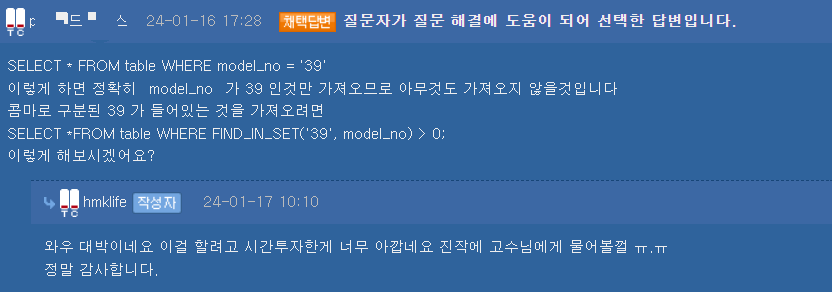 이렇게 하면 정확히 model_no 가 39 인것만 가져오므로 아무것도 가져오지 않는다
